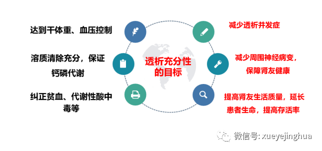 (3)血液透析溶質(zhì)清除較好。具體標(biāo)準(zhǔn)見后。小分子溶質(zhì)清除指標(biāo)單次血液透析URR達(dá)到65%,spKt/V達(dá)到1.2;目標(biāo)值URR70%,spKt/V 1.4。