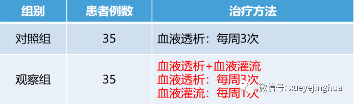 有研究者比較了血液灌流對(duì)于尿毒癥性瘙癢治療效果的觀察①,選取了70例尿毒癥伴皮膚瘙癢患者作為研究對(duì)象,分兩組,每組35人。對(duì)照組采用血液透析(HD)治療,每周透析3次。觀察組采用血液透析+血液灌流(HD+HP)的方式治療,每周血液透析串聯(lián)血液灌流治療一次,血液透析兩次。其中,觀察組使用的血液灌流器為淄博康貝醫(yī)療器械有限公司生產(chǎn)的雪凈品牌RA130型樹(shù)脂血液灌流器。比較兩組實(shí)驗(yàn)結(jié)果。