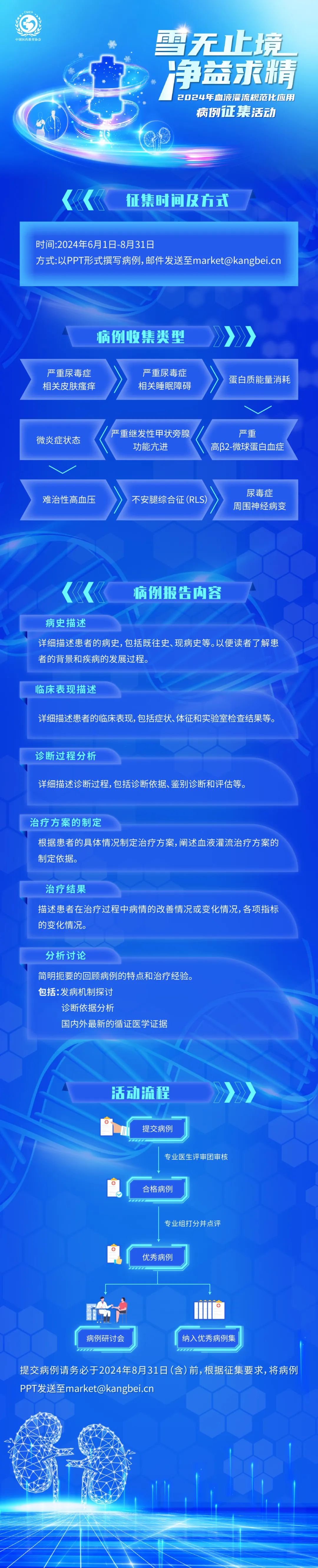 因此,中國醫(yī)藥教育協(xié)會攜手康貝醫(yī)療發(fā)起“雪無止境,凈益求精 | 2024血液灌流病例征集活動”。項目面向全國腎內(nèi)科醫(yī)生征集優(yōu)秀病例,旨在促進我國血液灌流治療領(lǐng)域最新研究成果的推廣與交流。